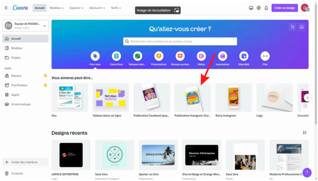Créer une publication Instagram