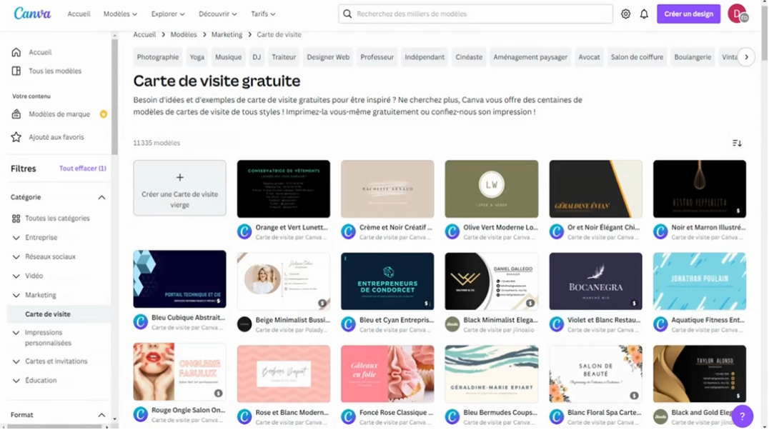 Pour créer une carte de visite, cliquez sur « Tous les modèles ».