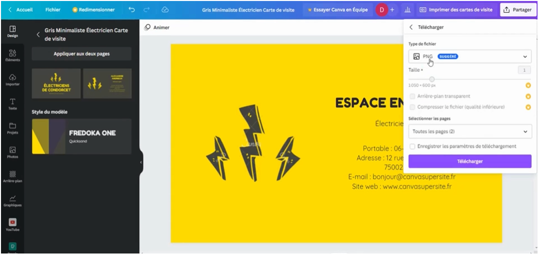 Pour changer le format du modèle, vous devez cliquer sur « Partager » et sélectionner « Télécharger ».