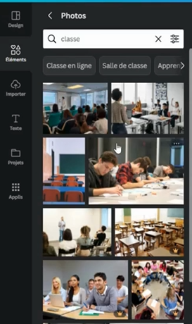 Il y a aussi une barre de recherche qui vous permet de chercher des images par thème. Ex : une classe.