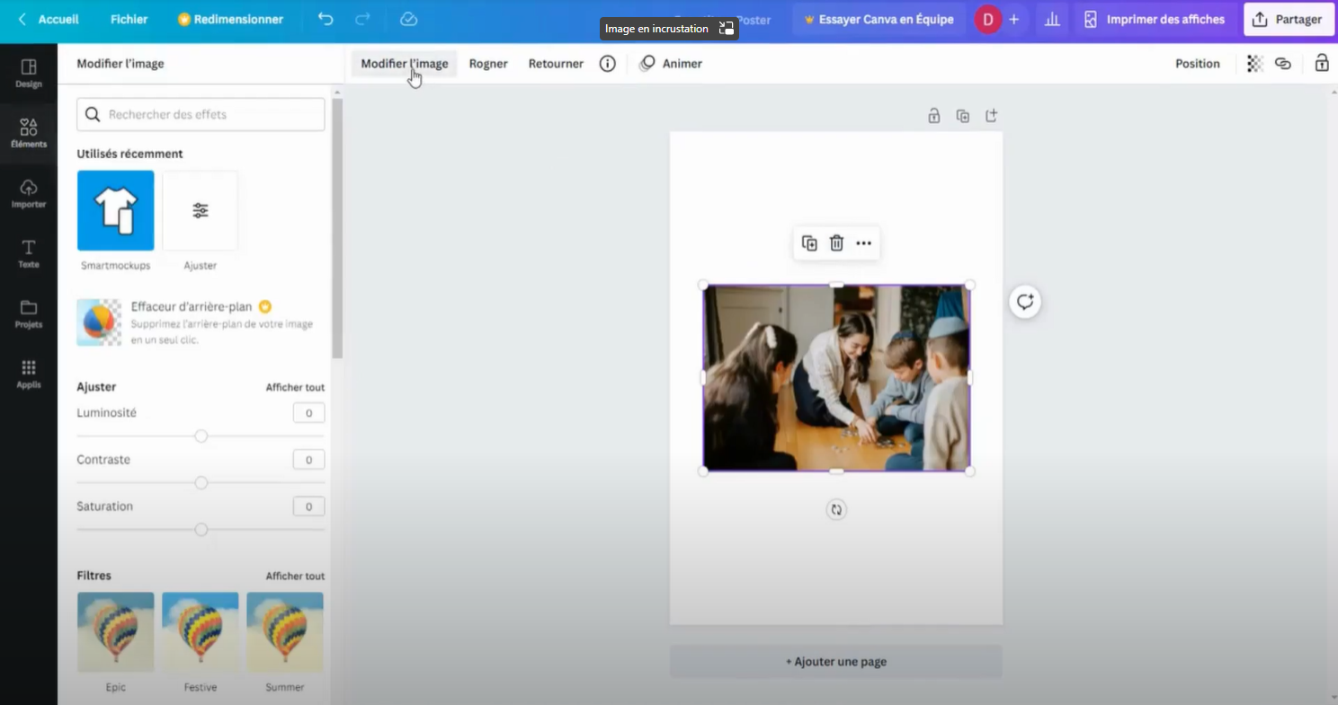 Vous avez la possibilité de modifier les effets de l’image.
