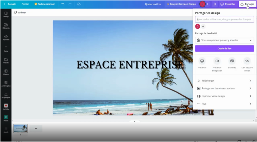 Pour partager le projet, il vous suffira de cliquer sur le bouton en haut à droite « Partager ».