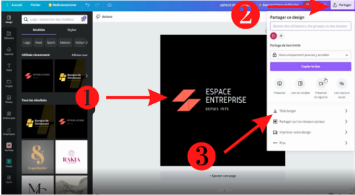 2. Cliquez sur « Partager » puis « Télécharger ».